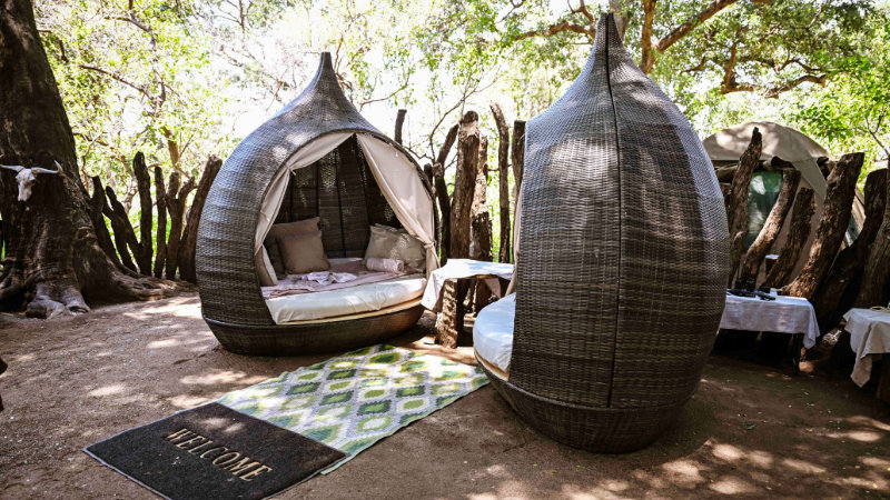 Tree Camp This is any child’s fantasy: literally a camp in a tree. A unique camp built 4 meters above the ground, around the boughs of an ancient Mashatu tree and two lead wood trees. Overlooking the banks of the Majale River, this spot offers a spectacular panoramic view of the adjacent cliffs and flood plain opposite where Mashatu's legendary elephant herds roam. Five beautiful, spacious canvas roofed areas house four poster beds and classic antique furniture. There is a spacious dining and lounge area on the elevated platform for relaxing. This truly extraordinary camp is one that will be remembered and spoken about for years to come.