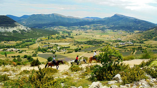 This morning, the ride passes at the foot of the Giant of Provence: Mont Ventoux. We follow the Toulourenc, a pleasant refreshing stream, cross some typical villages, and enter the Drôme Provencale: an alternation of wooded hills and lavender fields. In the afternoon, we head to Mévouillon, where the truck and minibus await us, for the horse and rider transfer back to Lauris, in the Luberon.