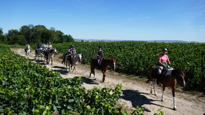 We offer you an exciting trail on horseback to explore the Champagne region and its variety of vineyards. Our trail will take you around the « Montagne de Reims » – a wooded plateau whose slopes are the so-called "Pinot Noir kingdom" (a famous grape variety) . We will also ride along the Marne Valley – where the Pinot Noir grape grows side by side with the Meunier variety. We will discover the « Côte des Blancs » too. Some of the most famous Champagne wines, named "Blanc des Blancs" are produced there using the Chardonnay grape. The Champagne region belongs to the UNESCO World Heritage Sites, thanks to its breathtaking setting of the « king of wines ». With its sparkling name, the region is a promise of vineyards, slopes, cantering, prestigious cellars and beautiful landscapes! Famous properties are the heirs of a unique, festive art of living. Champagne region is an historical region and the cathedral of Reims was witness to several French king’s crownings.