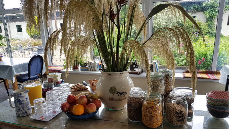 The breakfast consists of a "Full Irish breakfast", i.e. in addition to the continental breakfast, also a cooked part consisting of eggs prepared according to your wishes, sausages etc.