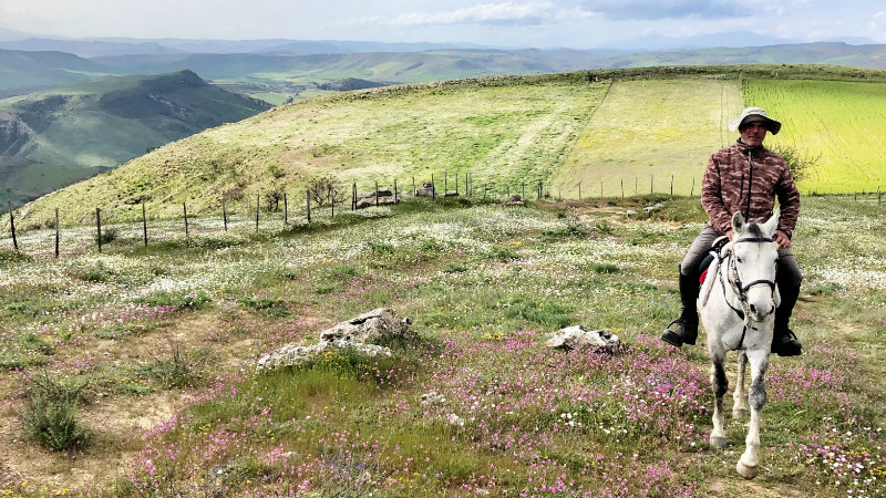 We will set off at about 08.30 in the morning, riding along paths and lanes through the park to reach Portela Mandarini, an important crossroad between ancient transhumance routes through the mountains. We will then ride through a wild and unspoilt area to arrive above Geraci Siculo, a medieval hilltop town, and one of the highest in the province of Palermo, from where we can admire spectacular views of the surrounding countryside, where we will stop for a picnic lunch. In the afternoon we will descend along an ancient “trazzera” to reach the valley of the river Rainò, tributary of the River Pollina, on the eastern boundary of the Madonie Park. We will spend the night at Agriturismo Casalvecchio and enjoy a delicious dinner prepared with produce straight from the farm.
