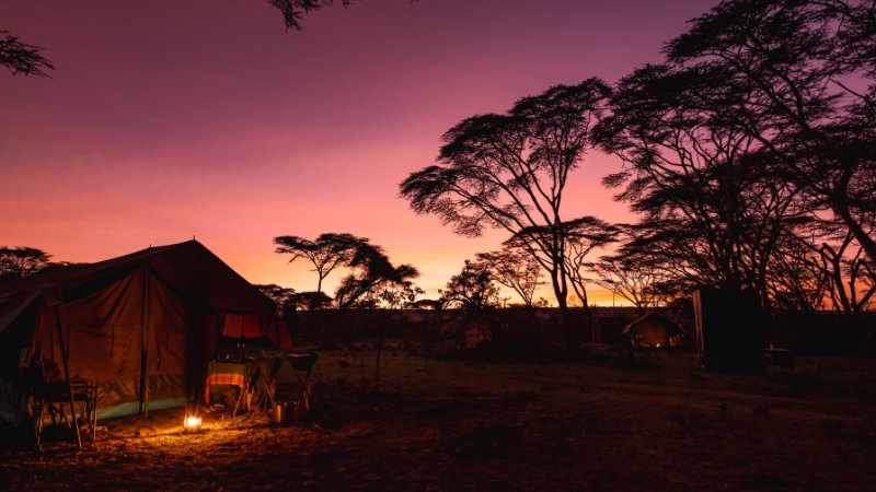You live in comfortable 2- bed tents in traditional safari style with washbasin and toilet tent next door. There is also a shower close by. There is no electricity at the campsites but rather lights are operated by battery and gas.