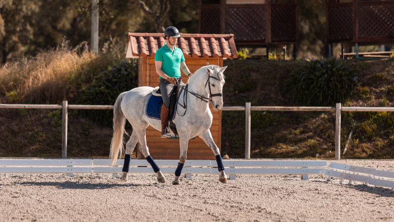 You can choose from dressage, working equitation (WE) and show jumping lessons (á 50-60 minutes) and an all-round program of all disciplines. If you like, you can replace some lessons for 1-hour hacks in the surroundings. There are two outdoor arenas (one is a complete WE course) and also a covered arena 20x50 meters with fiber sand.