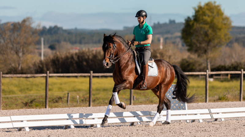 A small equestrian center with horses and instructors of the highest class has opened its doors to us. The equestrian center is about 150 kilometers (93 miles) from Lisbon in the region of Santarém. Lusitanos are trained here up to Grand Prix movements and Dutch Warmblood (KWPN) that competing in jumping up to 115 cm.
