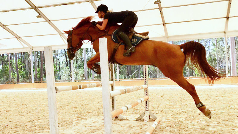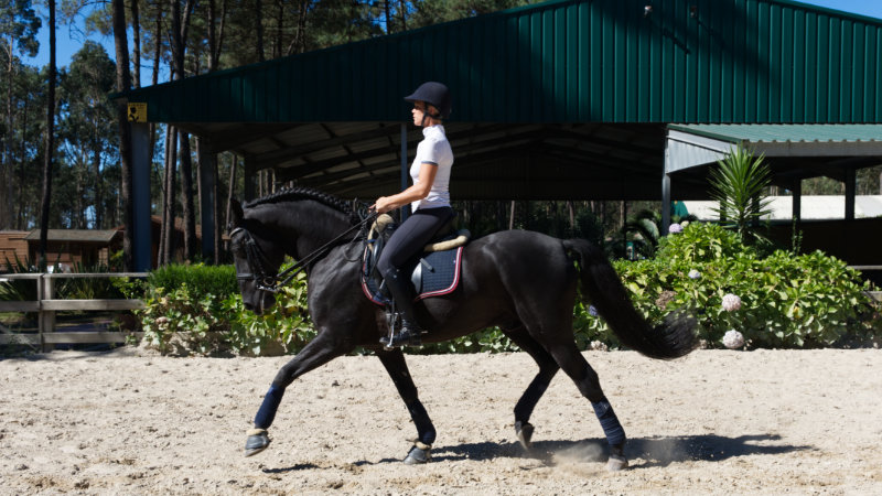 There is a wide selection of horses available for both dressage and show jumping. For dressage there are mainly beautiful Lusitano horses educated up to St George level, and in the jumping there are a variety of Portuguese, Dutch, French and German warmbloods jumping up to 1.25 m level. All of the horses are ridden with English tack.