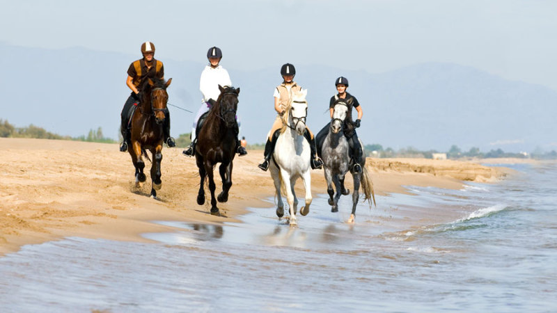 Galloping through surf on unspoilt sandy beaches, riding through old villages, passing Romanesque churches. We leave the foothills of the Pyrenees, the undulating plains of the Empordà region await, fringed by the long curve of the Bay of Roses, eight kilometers of beach! From here we can see...