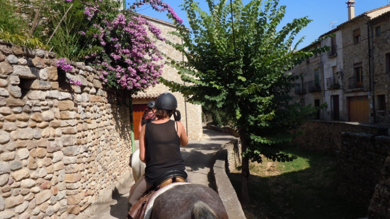 Today after saddling the horses we are entering in the most isolated area to the whole trail. Flora, wildlife, nature, we are going to enter in the wildness of the Alt Garrotxa. During the morning we ride through rolling hills and pine and oak forests. Then, past the charming village of Terrades we will continue through scenery of where it is very likely to meet herds of sheep or wild boar. At dusk we arrive at our destination, Sant Martí Sasserres, with his famous church, where we leave our horses to graze and rest. Today the assistance translates us by car to the Hotel Masia La Palma in Espinavessa. It is a house dedicated to rural tourism where rooms are rented without losing the charm of the place where Tonia and Andres are the perfect hosts.