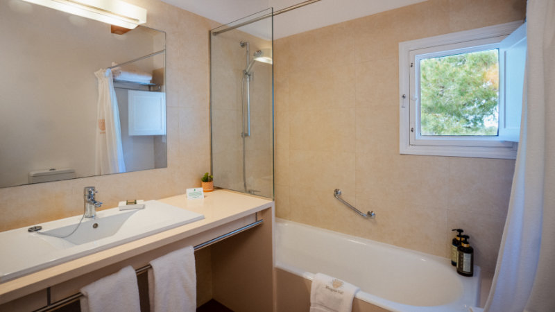 There are superior rooms, all featuring their own terrace and a unique design. Some preserve the traditional atmosphere of the main building, while others have been renovated with a more modern touch without losing their original charm. They are situated in different parts of the hotel, all created for relaxation and for enjoying the surrounding nature.