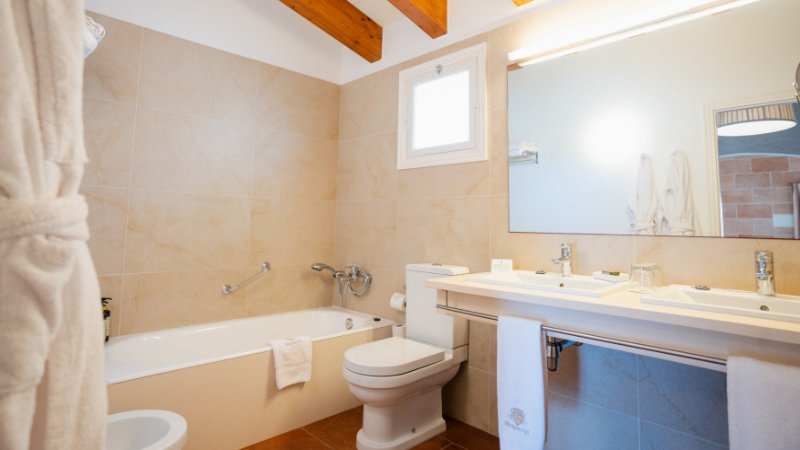 During your stay, guests are accommodated in a four-star hotel that preserves the traditional Menorcan rural style, inspired by the island’s iconic whitewashed farmhouses. The hotel is located just outside Es Migjorn Gran, in the centre of what was once a large farm that produced, among other things, milk used for Mahón cheese.