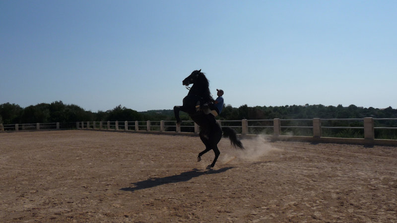 In the afternoon you will have the option of having a 1-hour classical dressage lesson on a Menorcan stallion which will include learning to perform the famous Menorcan dressage move "the Bot". The Menorcan horse is one of the only breeds in the world that is able to perform this upright movement where the horse stands (and sometimes even walks) on its hind legs!