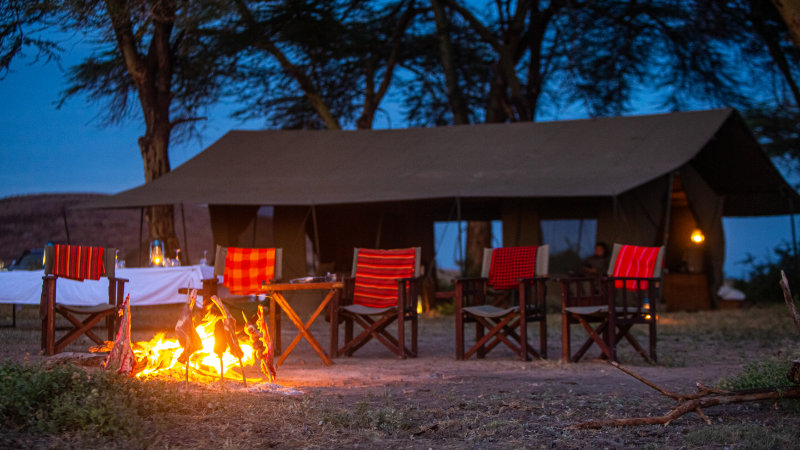 Today might be the first moving day. An early wake up at dawn gives you time to pack up before breakfast, then mount up to set off to a new camp, riding through areas that have rarely been visited on a horse, perhaps passing Maasai herdsmen or their small settlements, where tribesmen live off the land as they have done for centuries. After about 4 hours riding, meet the back-up crew for an al- fresco lunch in the bush and time to rest in the heat of the day, before heading off again, aiming to reach the new camp by tea time. Set up ahead by the back-up, tonight’s camp might be spectacularly situated in the middle of the vast open plains, where, at peak migration time, the air will be filled with the braying and mesmerizing grunts of wildebeest. A cup of tea or a cold beer when you arrive in camp, followed by hot showers & dinner, listening to the sounds of the bush.