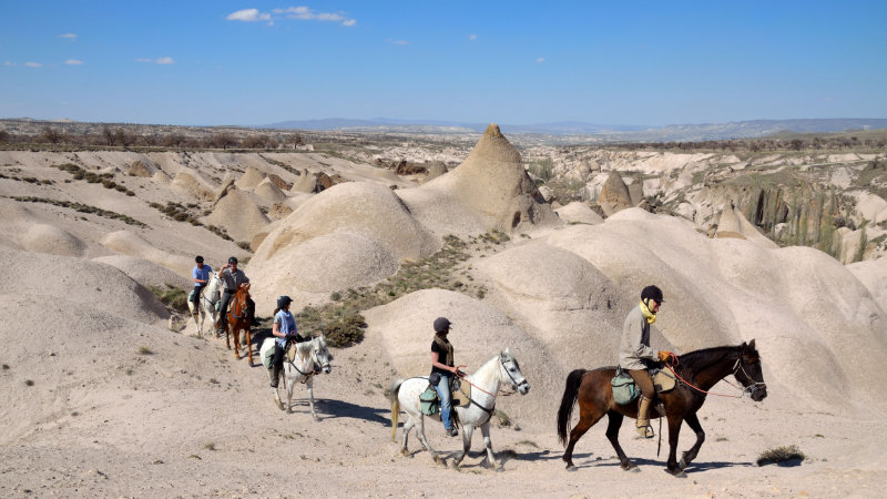 - 5 hours on horseback each day, except day 4 (ride in the morning and afternoon at leisure in Uchisar)